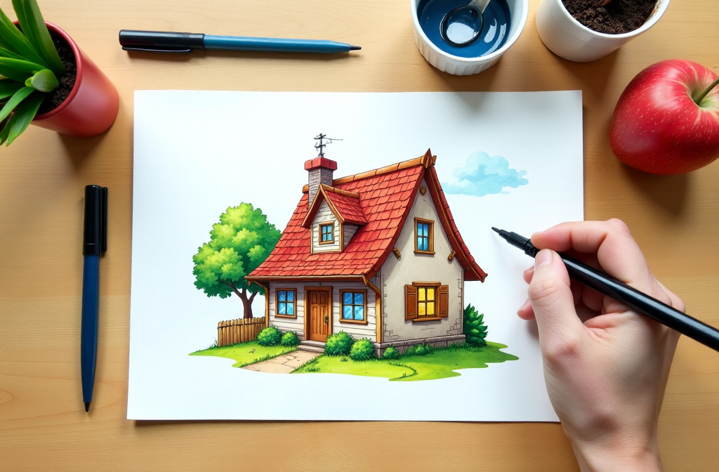 - Encourage them to add their own details, such as drawing a garden, pets, or even a family inside the house.