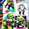- 100 exclusive, hand-drawn ninja turtle designs and cute sprites—each page is a new adventure waiting to be colored.