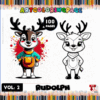 - 100 Festive Rudolph Designs: A variety of pages featuring Rudolph in playful, cute, and creative holiday scenes.